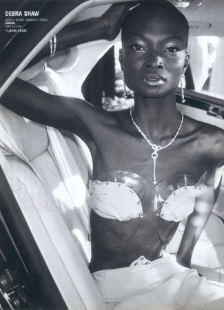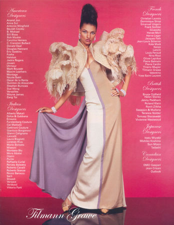 Adriana Arboleda in a bustier gown, built up with ostrich feathers