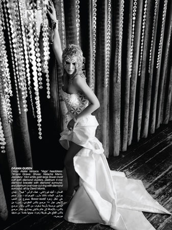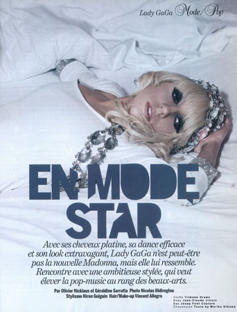Lady Gaga is wearing a plexiglas bustier and the headdress «La Naïade» made out of crystal
