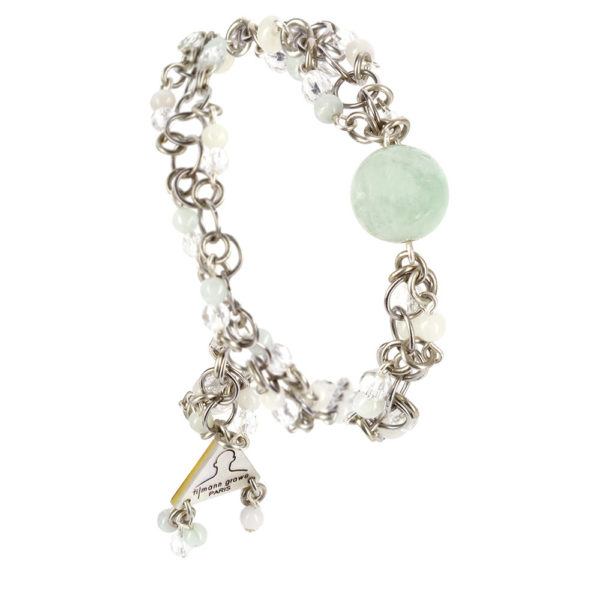 – Birmanian Jade stone ⌀12mm, Rock Crystal – Stainless-steel chain – Labeled with logo in mother-of-pearl – Finishes are hand-made in France
